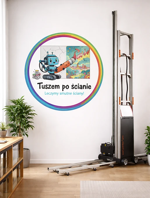 Tak, dzięki innowacyjnej technice druku jest możliwe drukowanie na ciemnej powierzchni. Obraz jest drukowany pięcioma kolorami, co oznacza, że nasza drukarka ścienna ma do dyspozycji biały kolor. Dzięki temu jest w stanie najpierw wydrukować biały podkład (którego finalnie nie widać) i na nim dopiero nadruk. Daje to drukarce ściennej możliwość drukowania dowolnej grafiki na każdym kolorze, jednocześnie nanosząc bezbłędny obraz z idealnie odwzorowanymi kolorami na dowolnej powierzchni pionowej.